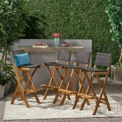 Buy ๐ฅ GDFStudio Ula Outdoor Folding Acacia Wood Barstools, Set Of 4, Teak/Brown โ
