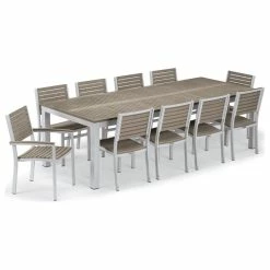 New โญ Oxford Garden Travira 11-Piece 103″ Table And Slat Chair Dining Set, Vintage Tekwood ๐