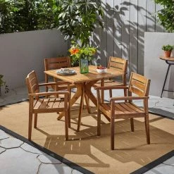 Cheapest ๐ GDFStudio Grace Nick Outdoor 5 Piece Acacia Wood Dining Set With X Base โ๏ธ