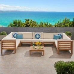 Outlet 🥰 Outdoor Interiors Eucalyptus 6-Piece Modern Seating Group With Coffee Table 🔥
