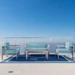 Deals 🎁 GDFStudio GDF Studio 4-Piece Crested Bay Outdoor Silver Aluminum Framed Chat Set 🔔