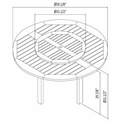 Dimensions & Weight: The overall table dimensions are 59D x 36H. Rotating table Diameter: 31D. Umbrella hole: 2 in. Chair dimensions: 18L x 22W x 31H. The seating dimensions are 16L x 16W x 18H. Weight capacity for each chair is 250 lbs