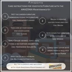 Easy to maintain and clean: FREE maintenance kit included. This kit includes: a wood cleaner, brush, gloves, sponge, emery paper, paint brush, Cotton cloth, and wood sealer oil