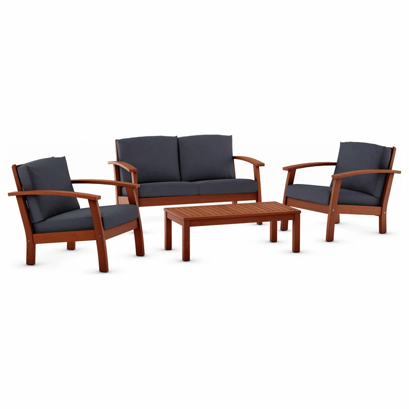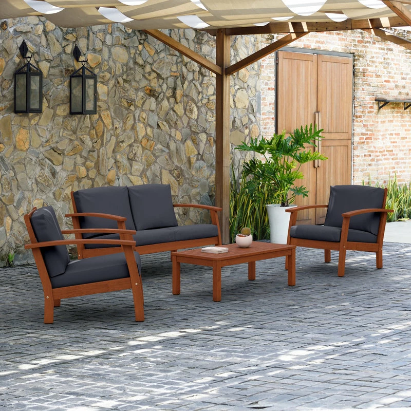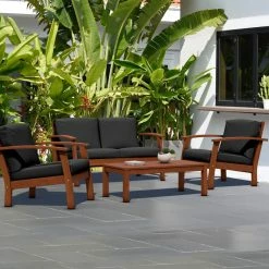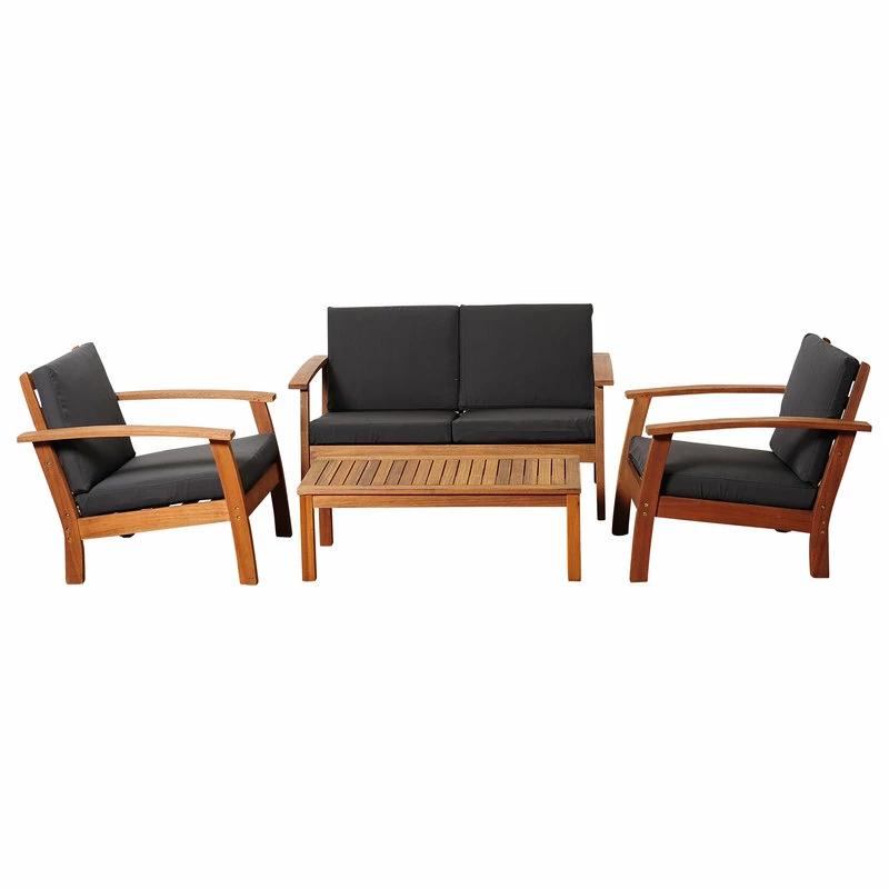 Perfect for summer relaxation or fun get-togethers in the cool summer evenings. The Murano 4-Piece Eucalyptus Patio Set is a fresh take on outdoor furniture. The relaxed design is sure to complement any outdoor space. Durable construction will make this piece a favorite of yours for summers to come. Outfit your home with quality pieces like this that highlight your distinct decorating style.