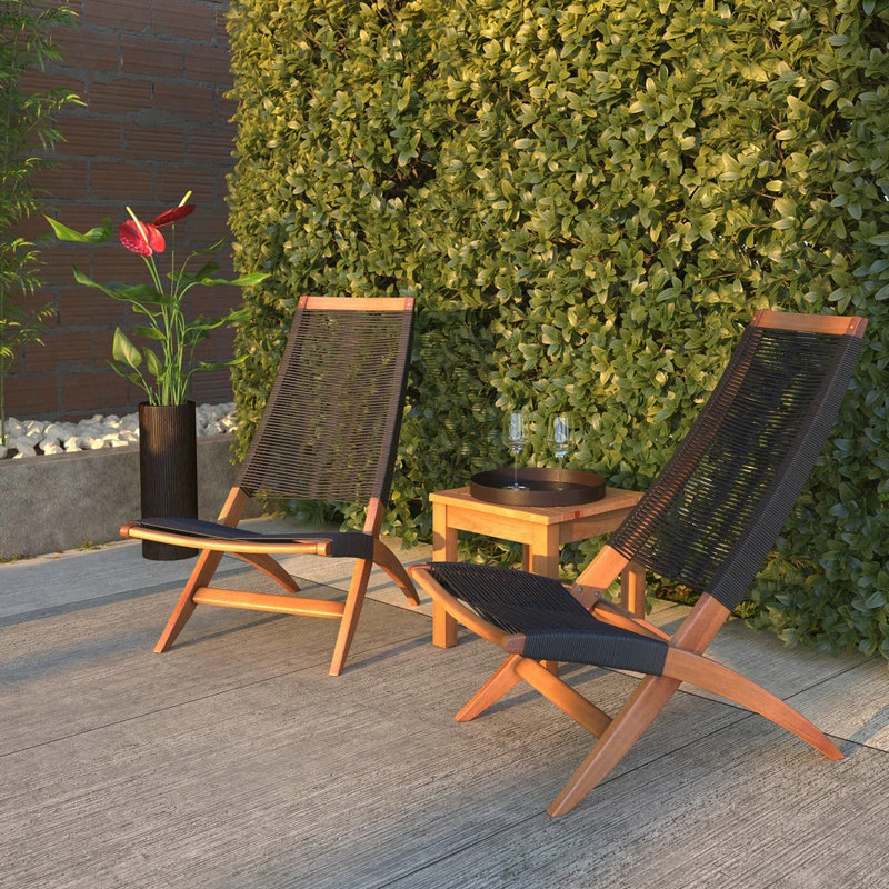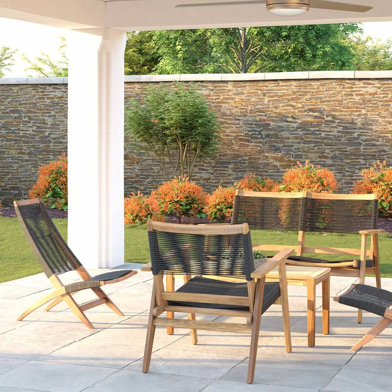 Crafted of solid Acacia wood in a honey-hued finish, the Lisa Lounge Chair is the perfect accent to your patio, balcony, or poolside living area. Relax or chat in comfort and style in this sleek modern lounge chair with mid-century design heritage. Modern black cording seat and backrest dry quickly making rain and wet swimsuits a non-issue. Pairs well with the Kingsmen Loveseat, Chair, and Coffee Table. Add a touch of relaxation to your space with the Lisa Lounge Chair by Balkene Home.
