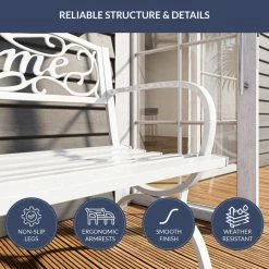 - Constructed with a steel frame to ensure a durable patio garden bench for years to come