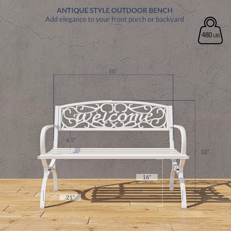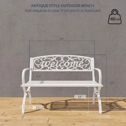 Garden Bench is ideal for enjoying your favorite peaceful spot, along a path, under a tree or among the flowers. Sturdy cast iron back and tubular steel frame bench features a handsome back with a beautiful design. Rich all-weather finish complements the bench’s surroundings. Classic good looks and a great price make this bench a perfect pick.