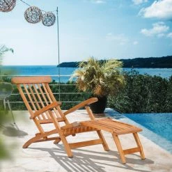 Teak Wood Titanic Steamer Lounge Chair made by Chic Teak. The sound of a summer breeze, the view of white caps sparkling during sunset, the cold thrill of an exotic cocktail. Need we say more? Our Teak Titanic Steamer Chair comes with stainless steel hardware, reclines for extra comfort and folds for easy storage. As with all our merchandise, this chair is made from 100% teak, which provides it with greater durability than lesser woods. You’ll love the stunning honey-brown wood grains found in our teak wood.