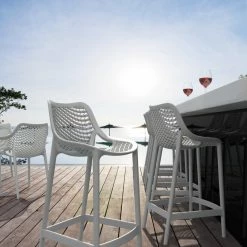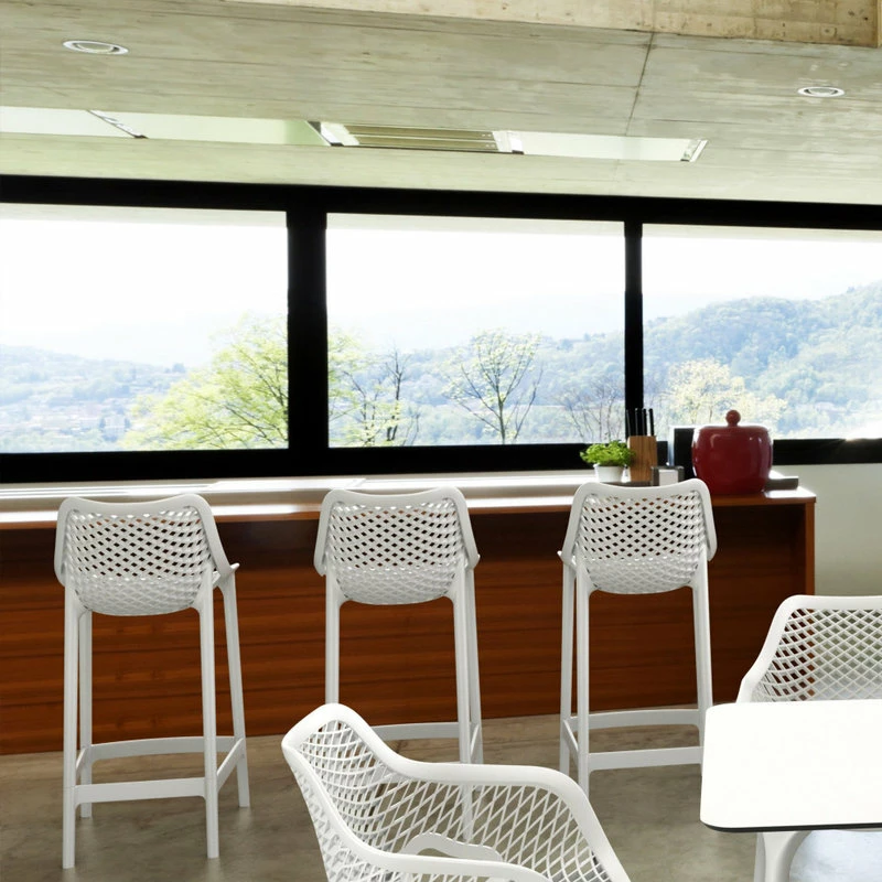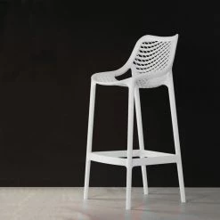 Bring cool contemporary style to the counter by way of the Air stool. This unique seat features soft curves, slim legs and a perforated design that doubles as art for your home bar, whether that bar is indoors or out.