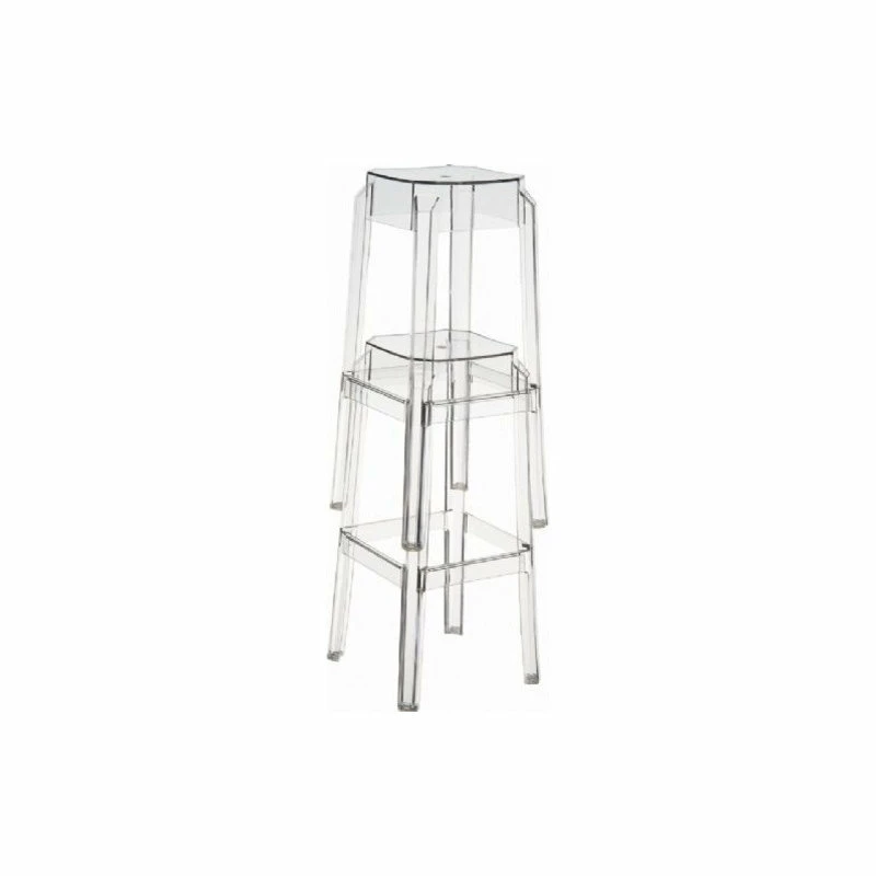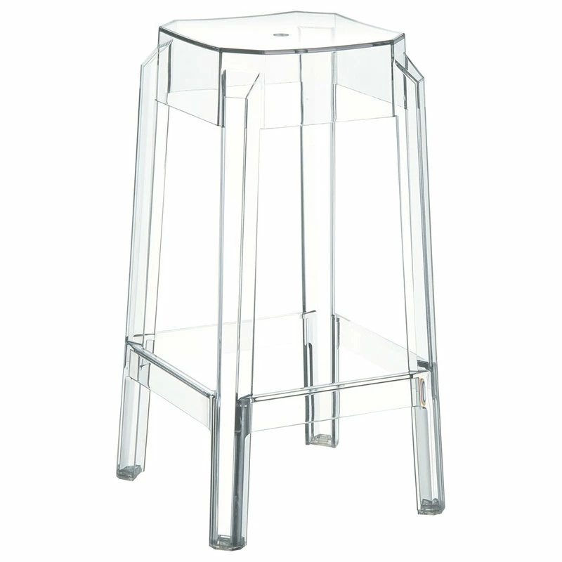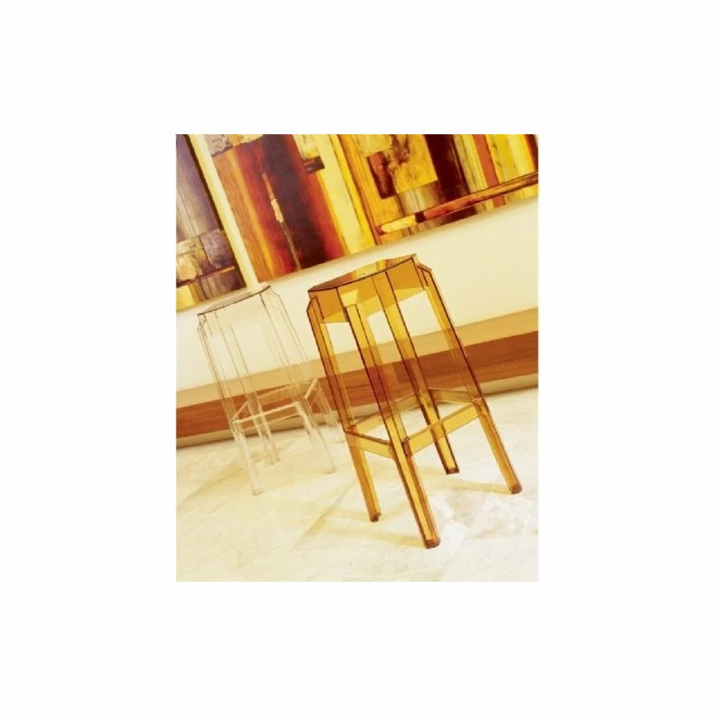 Fox polycarbonate counter stool. Modern contemporary design. Can be used both indoors and outdoors. Scratch resistant. Commercial grade plastic polycarbonate resin. Strong legs and structure. Stackable.
