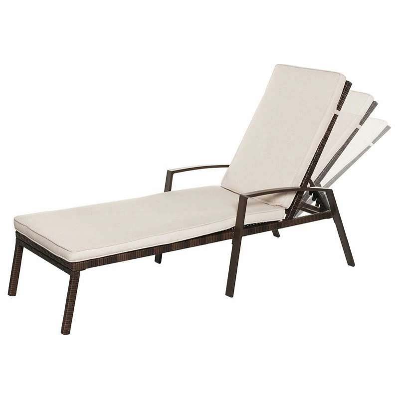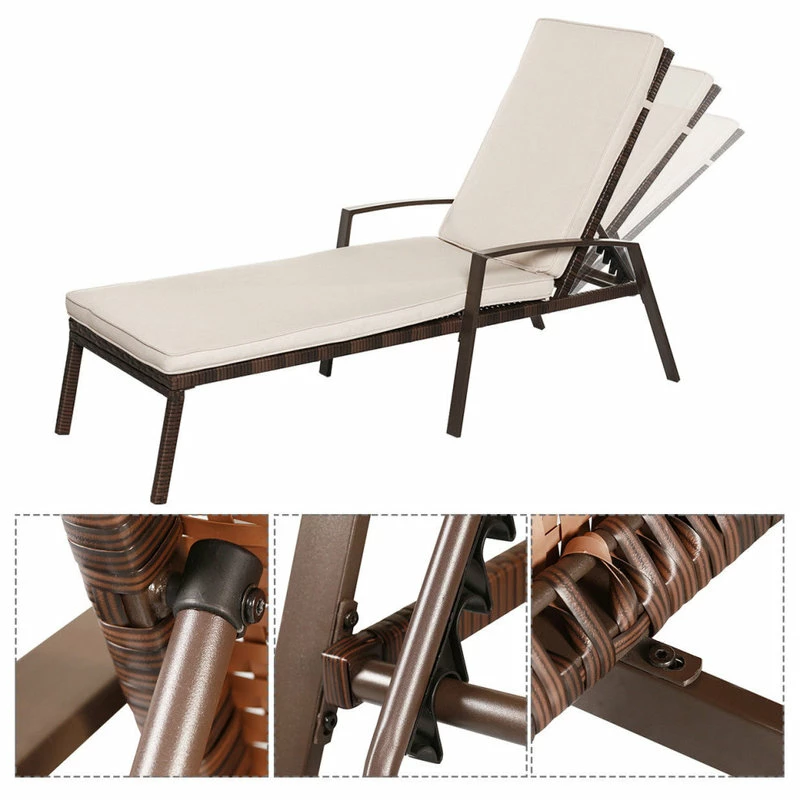 Our patio lounge chair combines with the comfort and practicability will be an excellent choice for your backyard. This chaise chair is made of premium rattan and sturdy steel frame, which can be used for many years. Spacious and soft cushion ensure you having a wonderful nap or rest during the leisure time. Besides, the cushion of the patio lounger with zippers is removable for easily cleaning. The chaise lounge chair comes with adjustable back so you can find the comfortable position according to your preference. And the steel handles on both sides will commendably fit your arms. The modern and concise style can match with outdoor environment.