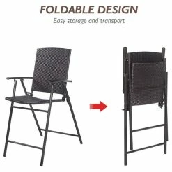 - 4 pieces brown rattan folding bar stool chair