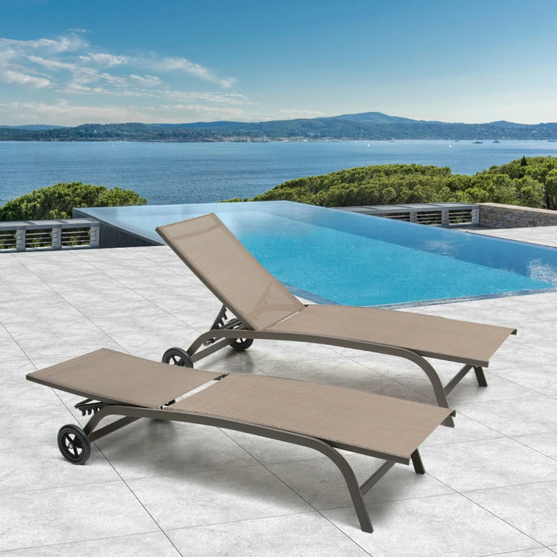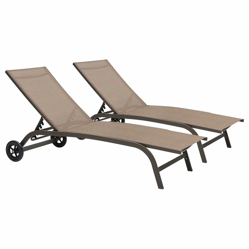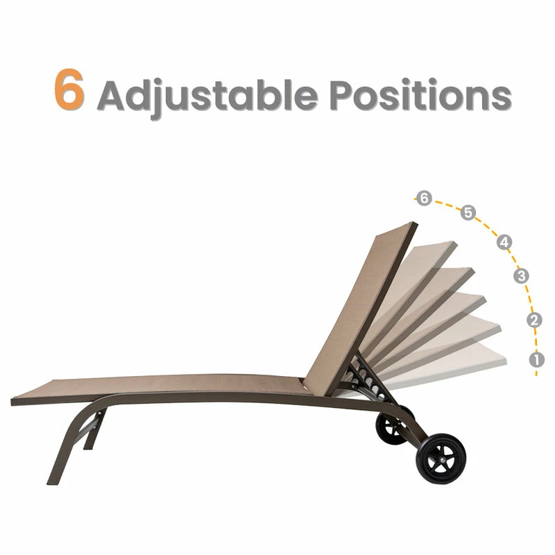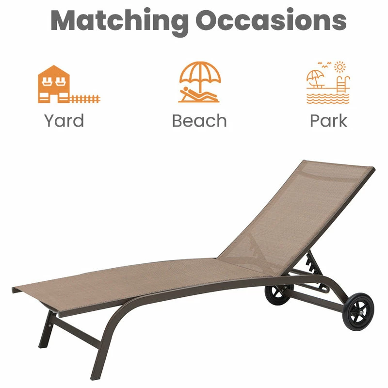 Outlet β Crestlive Products Adjustable Chaise Lounge Chair Outdoor Recliner With Wheels (Set Of 2), Brown π