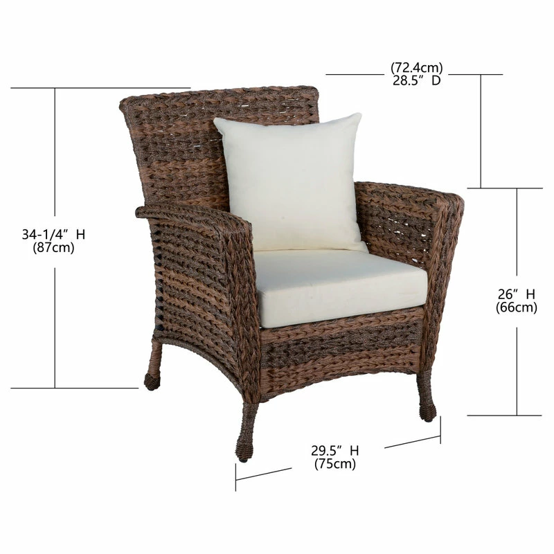 Entertain with a modern flair with this dual tone colors faux sea grass wicker outdoor furniture set. Any patio or outdoor space will look instantly welcoming with the addition of this outdoor weather-resistant set. Heavy-duty construction with emphasis on comfort, and easy cleaning and maintenance, our wicker patio set is guaranteed to transform your backyard. Moderately sized and versatile can be arranged in a variety of ways and fit any sized space; from your patio to the backyard or poolside.