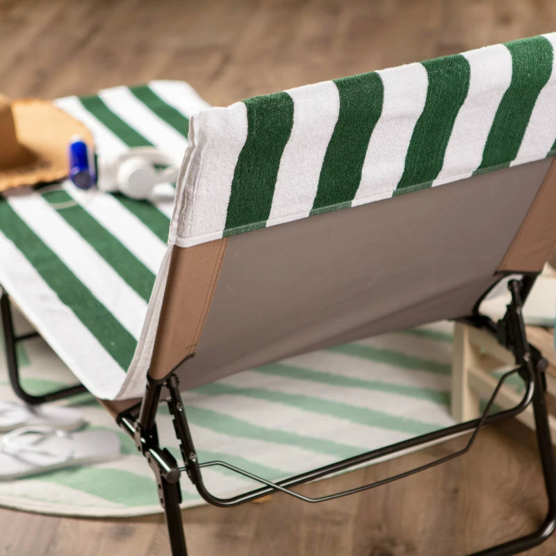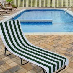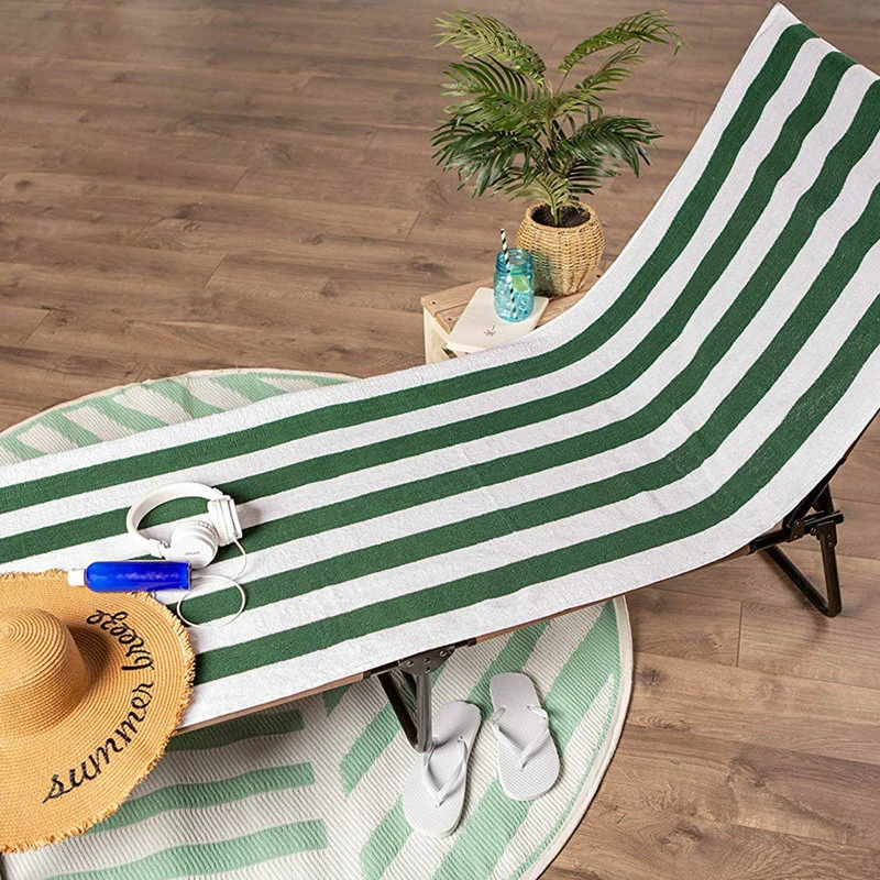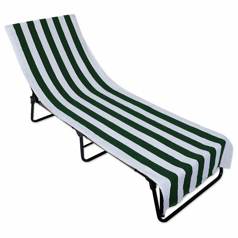 - Relax with one of our terry lounge chair covers that are made from luxurious 100% cotton. Our regular size terry cloth lounge chair cover is soft, absorbent and measures 26″x82″. There is also an 8″ pocket that fits over the top of the lounge chair to keep the towel in place. No more dealing with the wind blowing your towel away! Available in multiple colors.