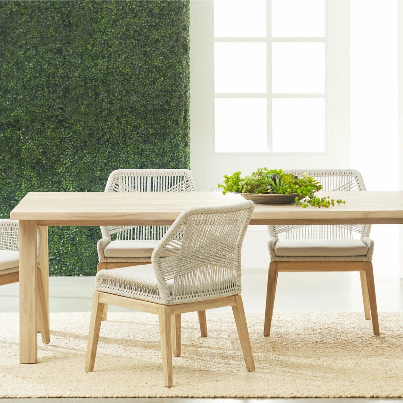 | Materials | Solid Teak Wood, Aluminum, Polyolefin Rope, 100% Olefin Fabric, Foam |
