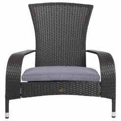 This new Black Coconino Wicker Chair is constructed of all weather wicker and includes a grey cushion. This lightweight yet durable Adirondack style chair is perfect for enjoying an evening on the patio or relaxing by the poolside. The attractive black finish is the perfect accent for any patio. This wicker chair can be used all year round and provides a maintenance free outdoor seating experience.