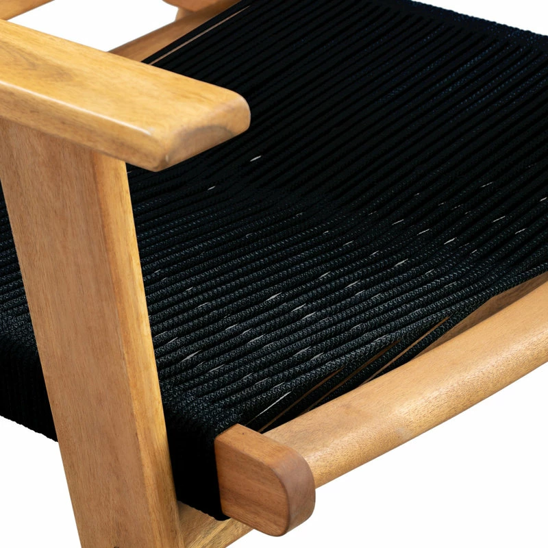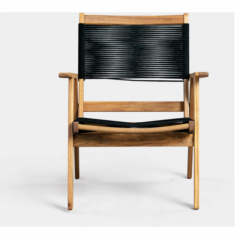 The Kingsmen Armchair by Balkene Home is part of our midcentury-modern Scandinavian-inspired collection of indoor/outdoor furniture, and pairs perfectly with the Kingsmen Armchair, Loveseat Bench, and Coffee Table to create a versatile seating arrangement. This chair features solid-wood construction — with clean lines and modern black cordage suspension seat — and easy assembly.