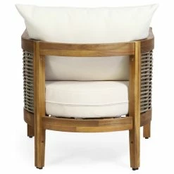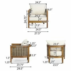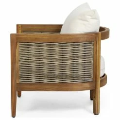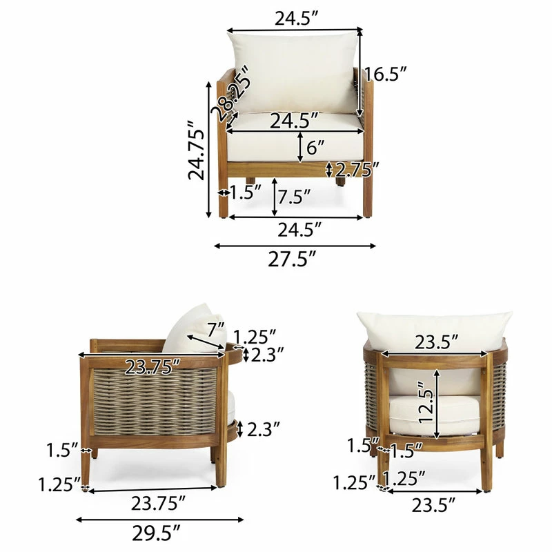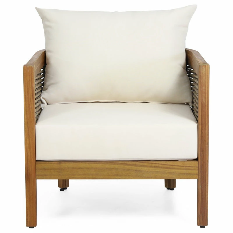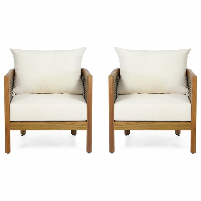 Enjoy the warm sunshine in luxurious seating that is sure to bring an extra boost of style to your space. Combining a gorgeous blend of mixed materials, our club chair set will be a flawless addition to any outdoor lounge area. This can be used as a standalone or can be used to accent your existing furniture, making this a dream for those who love to personalize their space. With solid acacia wood frames, wicker accents, and plush outdoor cushions, these chairs offer hours of conversation for you and your guests.