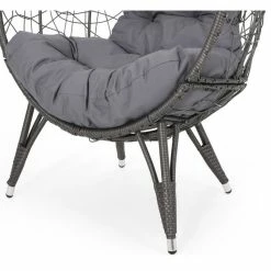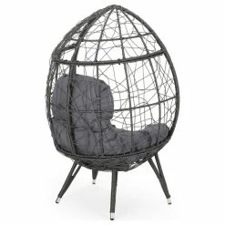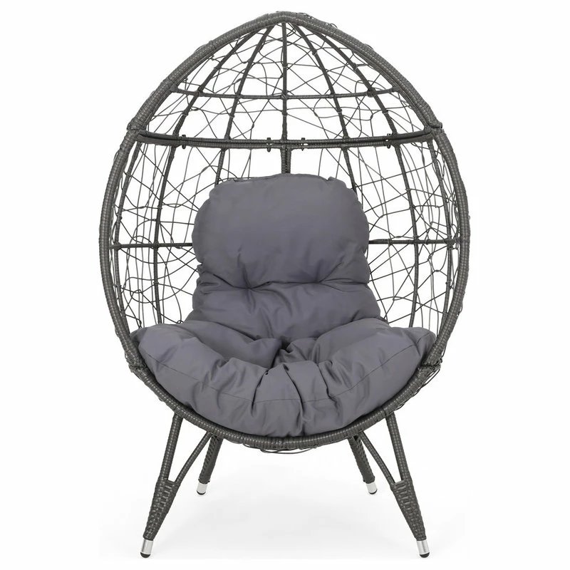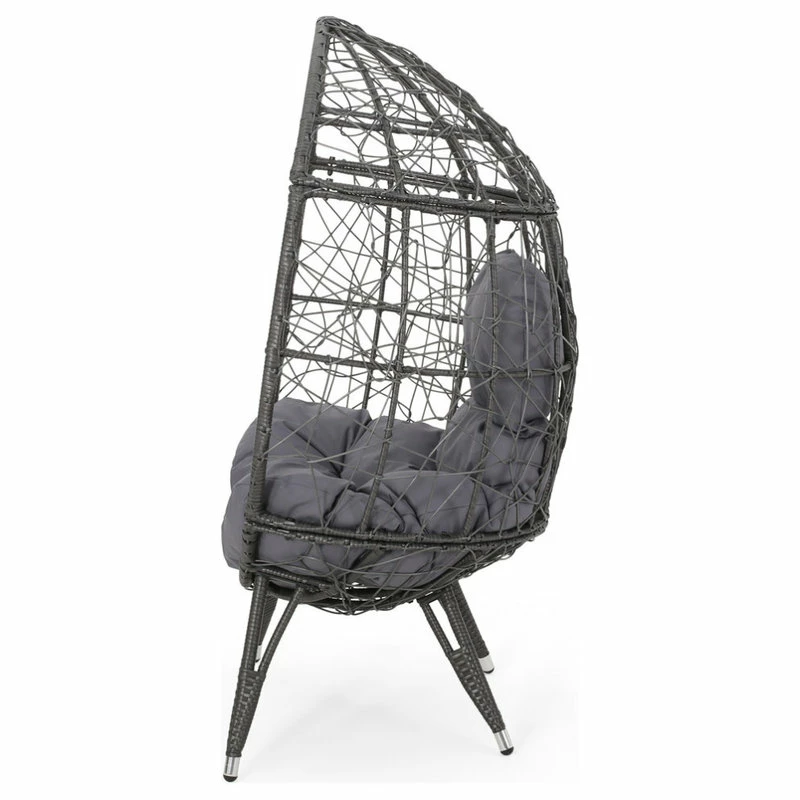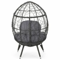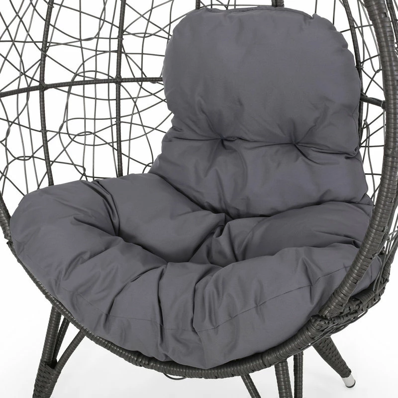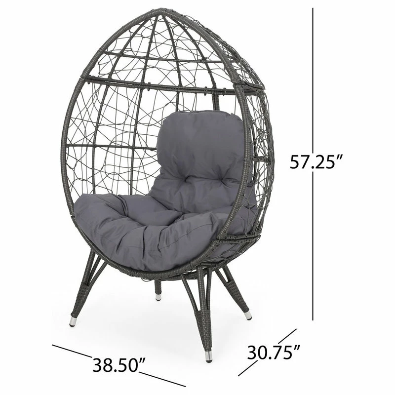 Give your backyard space a flawless touch and an artistic flair by bringing home our exquisitely designed chair. Featuring a gorgeous teardrop shape and intricate abstract design, our outdoor chair not only gives your patio a modern look but also offers incredible comfort. This is constructed with beautifully wrapped wicker with a sturdy metal frame, allowing you hours of relaxation whenever you need it. Finished with plush water-resistant cushions, this piece is a truly extraordinary addition to your summer lounging.