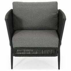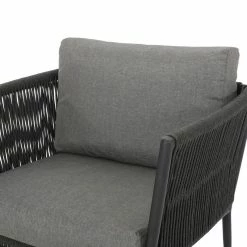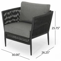 Tie your outdoor space together with dazzling textures and exquisite design. This set of club chairs brings together stunning, hand-crafted rope weave with smooth aluminum frames to create a sleek and comfortable space for your home. This chair set provides delightfully plush water-resistant cushions for the utmost comfort that offers effortless relaxation throughout the summer season. With sturdy, solid frames, tapered legs, and beautifully textured design, these chairs will have no problem blending into your outdoor decor with its modern style and incredible durability.