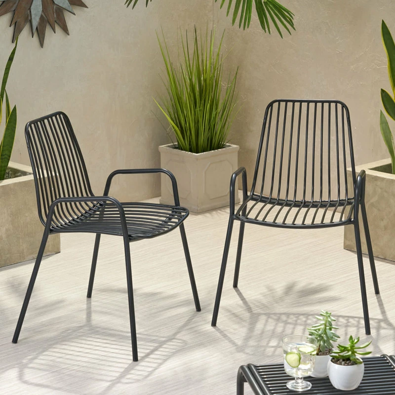 Pull your patio space together with an outstanding flourish by introducing a set of outdoor chairs to any corner of your backyard. Featuring crisp parallel lines that run through the backrest and seating, our chairs provide a timeless style to your home while providing ultimate comfort. Consisting of an iron frame, this charming set is made to last with its durable structure. So pull up a chair or two and let yourself settle back and relax for years to come.