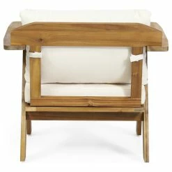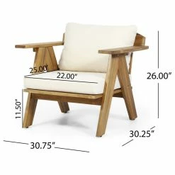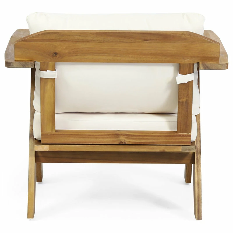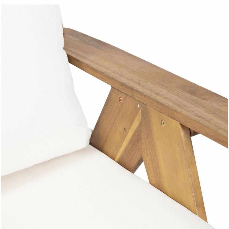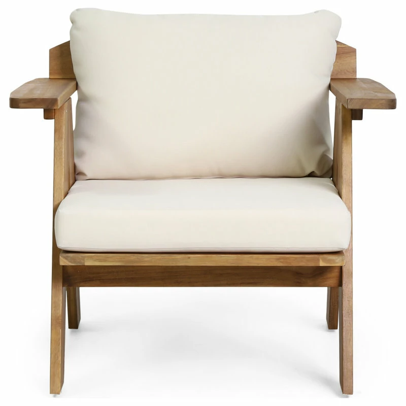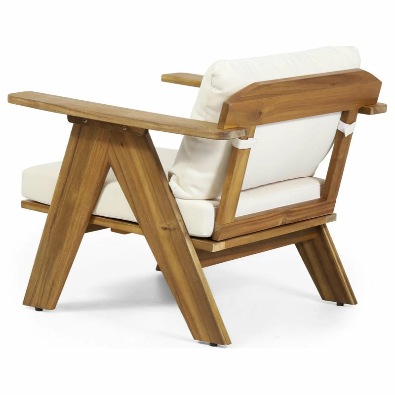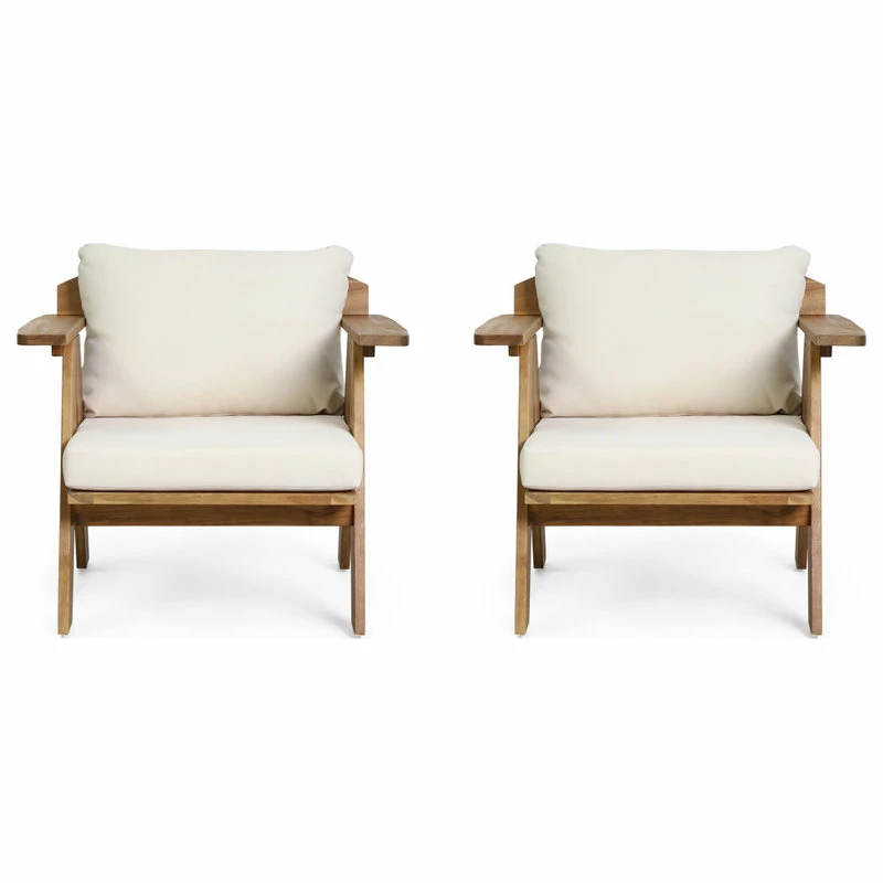 Spice up your outdoor seating with crisp, clean lines that create a chic modern look. Combining an edgy geometric design and slat panel seating, our club chair set will be a flawless addition to any outdoor lounge area. This can be used as a standalone or can be used to accent your existing furniture, making this a dream for those who love to personalize their space. With solid acacia wood frames and plush outdoor cushions, these chairs offer hours of conversation for you and your guests.