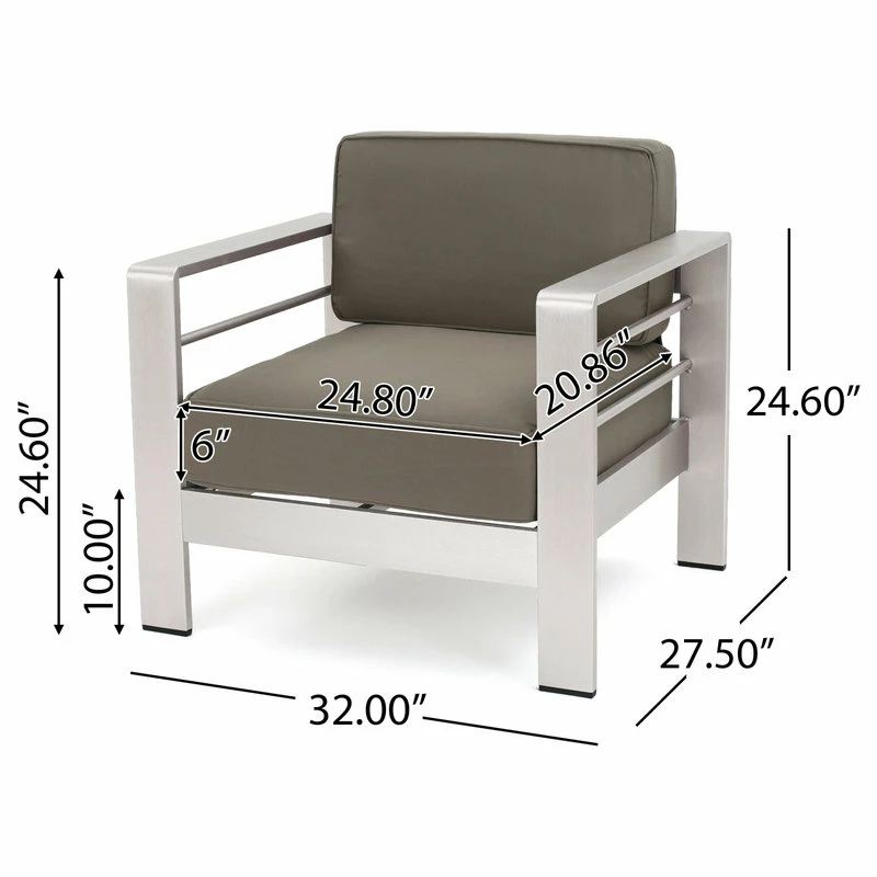 - Club Chair: 27.50″D x 31.90″W x 31.25″H