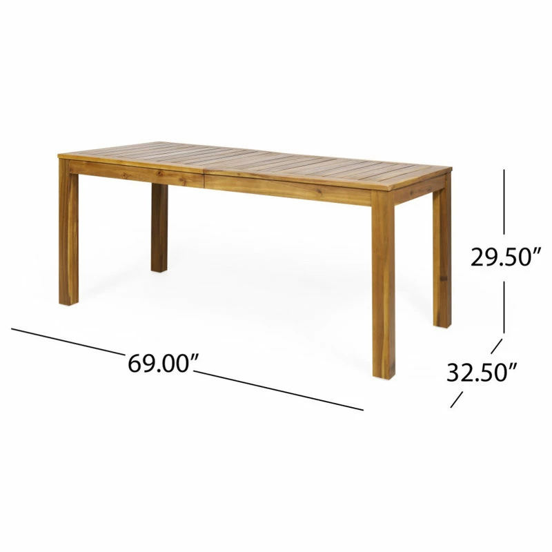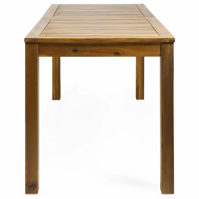 An ideal combination of function and style, our table is perfect for any outdoor space. Pair it with your favorite set of chairs or coordinate it with a variety of seating choices for a unique and personalized look. This table is made with rich acacia wood and classic slat paneling, allowing you to create your perfect dining setup. Its delightful rustic design provides incredible stability that won’t just blend with your existing decor but will bring out the best of your backyard or patio space.