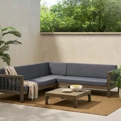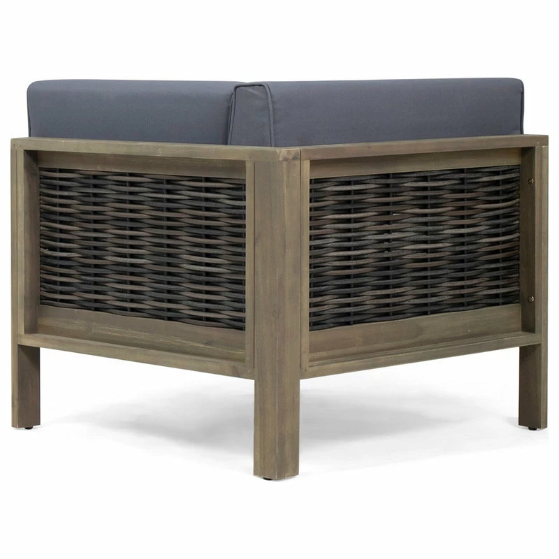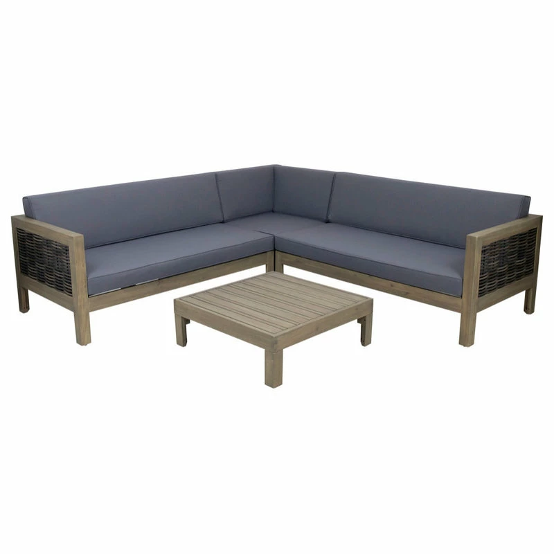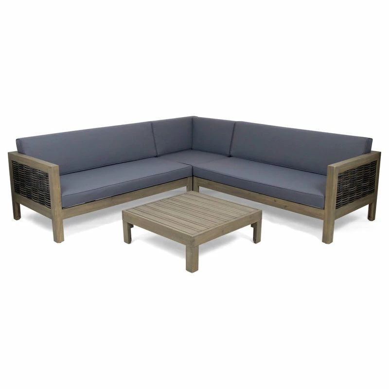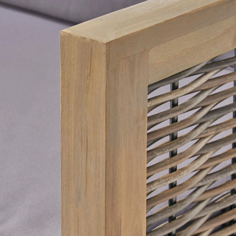 Sit back and unwind on a sunny weekend afternoon in good furniture and with even better company. Our delightful sectional sofa set brings both incredible comforts with its water-resistant cushions and immaculate style with an extraordinary open slat motif in both its seating and coffee table. Featuring a gorgeous mix of woven wicker and acacia wood, this set brings the best of the best to your backyard or patio space, making this your go-to for outdoor parties and casual moments of relaxation.