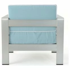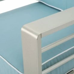 This loveseat set perfectly exudes a modern feel to any outdoor living space. With its unique and eye-catching design, this set offers taste and functionality to your outdoor space. The combination of natural and industrial looking elements compliments any style of dฬฉcor and the aluminum and waterproof cushions make this set an immediate statement.
