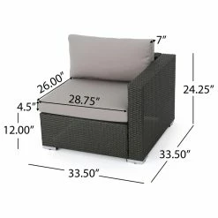 - Left and Right Arm Chair Dimensions: 33.25 inches deep x 33.50 inches wide x 24.25 inches high