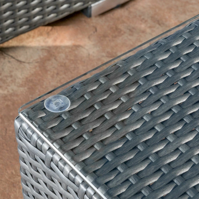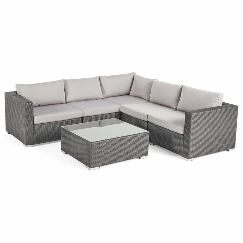 From backyard barbeques to enchanting summer evenings with your family, our five-seater sectional sofa chat set has you covered in both style and comfort. With an aluminum frame, a wicker finish, and a coffee table with a tempered glass top, this set adds a perfect balance of elegance and durability. Choose between Sunbrella or water-resistant cushions for long-lasting comfort that is sure to impress. If you choose one of our Sunbrella options, the covers will be shipped separately and should arrive within 72 hours of your set.