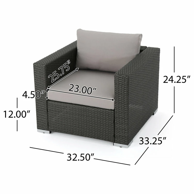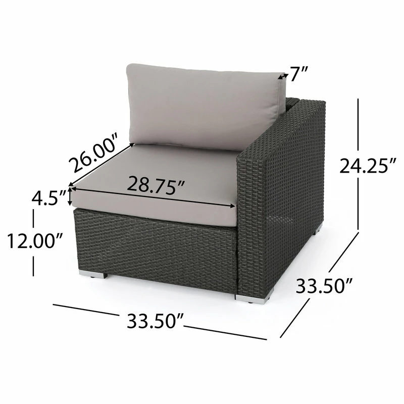 - Left and Right Arm Chair Dimensions: 33.25 inches deep x 33.50 inches wide x 24.25 inches high