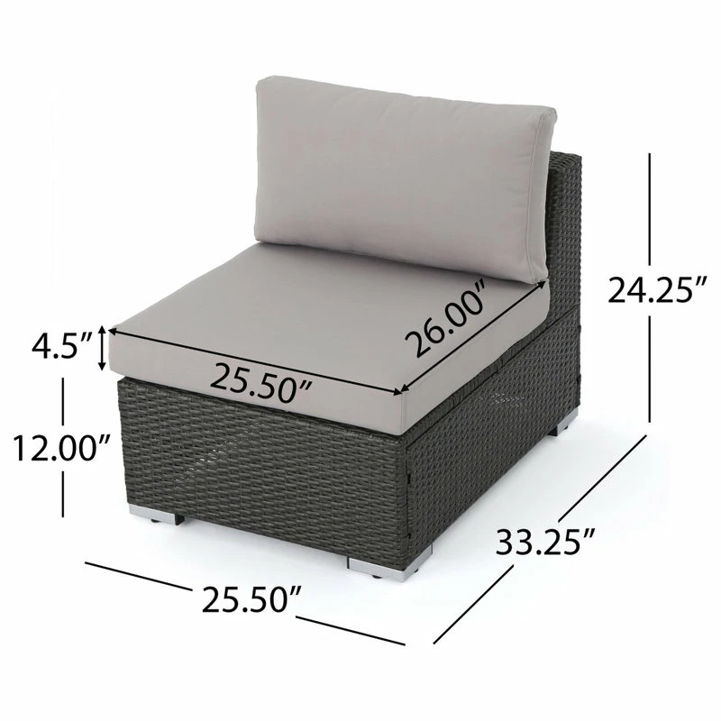 - Armless Seat Dimensions: 25.50 inches deep x 25.50 inches wide x 12.00 inches high