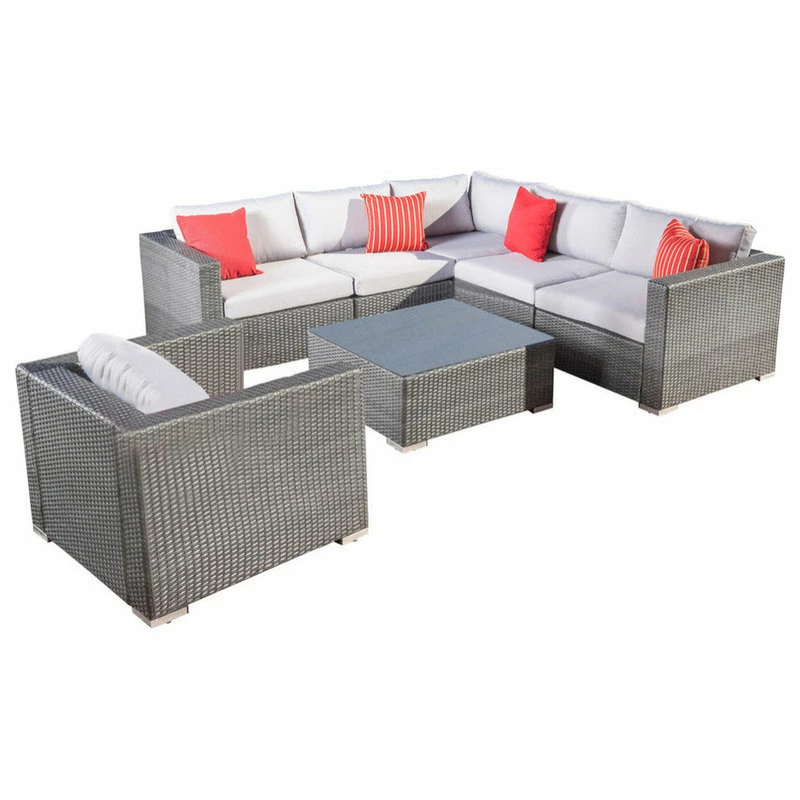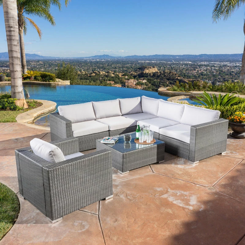 Enjoy a cozy weekend with your family in our six-seater sectional chat set that provides ample space to sit and relax in the great outdoors. This classy set features a stunning wicker weave and includes a matching coffee table with a beautiful tempered glass top. Choose between Sunbrella or water-resistant cushions for long-lasting comfort that is sure to impress. If you choose one of our Sunbrella options, the covers will be shipped separately and should arrive within 72 hours of your set.