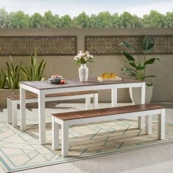 - Includes: One (1) Table and Two (2) Benches