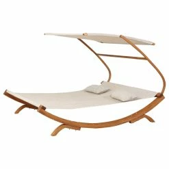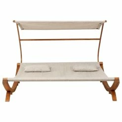 Enjoy the relaxing amenities of a vacation right in your backyard with the Bayard sunbed. Made of beautiful larch wood and upholstered in an off-white weather resistant fabric, this outdoor piece is easy to match with other decor and can be customized to your taste with the addition of throw pillows.