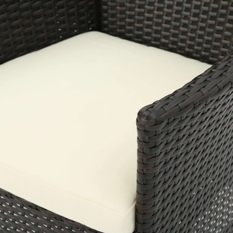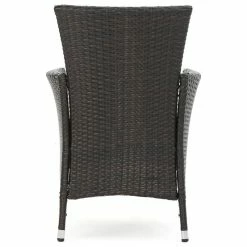 The Clementine Outdoor Brown Wicker Dining Chairs are made out of rich, brown PE wicker that will complement any nearby landscape. The all-weather wicker allows these chairs to last in any weather condition with little maintenance, and the water resistant cushions provide added comfort, and are easy to maintain. These sturdy chairs are also stylish and can be placed together or coordinated with any outdoor dining set.