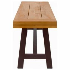 MODERN INDUSTRIAL: Our dining bench incorporates a powder-coated frame with a rich wood top to create an understated modern industrial design. Featuring classic slat paneling, this bench offers a chic aesthetic to any home.