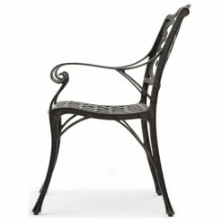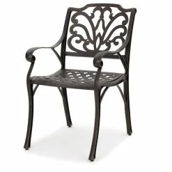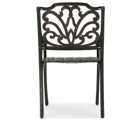 These outdoor dining chairs are the perfect addition to any patio. Featuring a cast aluminum build that provides a sturdy yet lightweight frame, allowing you to move these chairs wherever you need them. The design work on the chair back has a natural feeling of waves and flowers, providing the perfect atmosphere for your outdoor space.