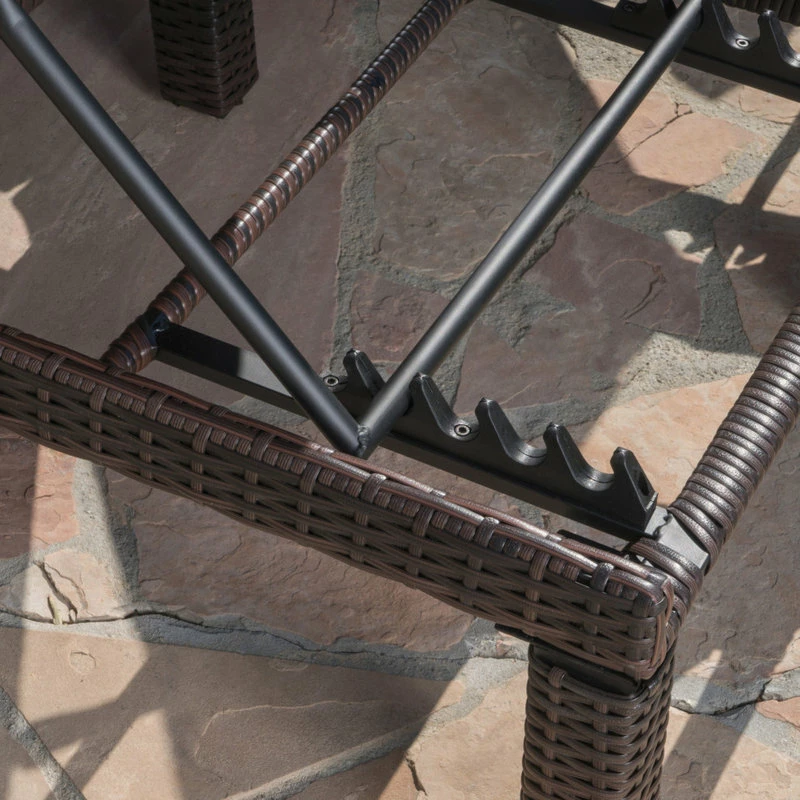 This wicker chaise lounge makes a perfect addition to any outdoor setting. Its adjustable backrest and water-resistant cushion are both added elements of comfort that will have you lounging for as long as possible. With a sturdy iron frame and a contemporary wicker design, this lounge offers a seat solution that will enhance the overall finished look of your outdoors.