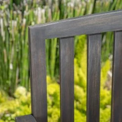 Enjoy this stylish wood bench in your backyard. Made with acacia wood, with a teak wood finish, this bench is both sturdy and beautiful to look at. Enjoy reading a book on a sunny afternoon, or taking a nap under a tree with your puppy cuddled close by. This bench will allow you to fully enjoy the outdoors of your backyard without taking up a huge amount of space.