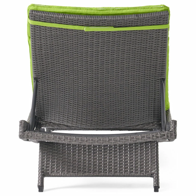 Add some stylish comfort to your patio decor with this wicker lounge set. These lounges are weather resistant and have an adjustable back and folding legs for easy stacking.