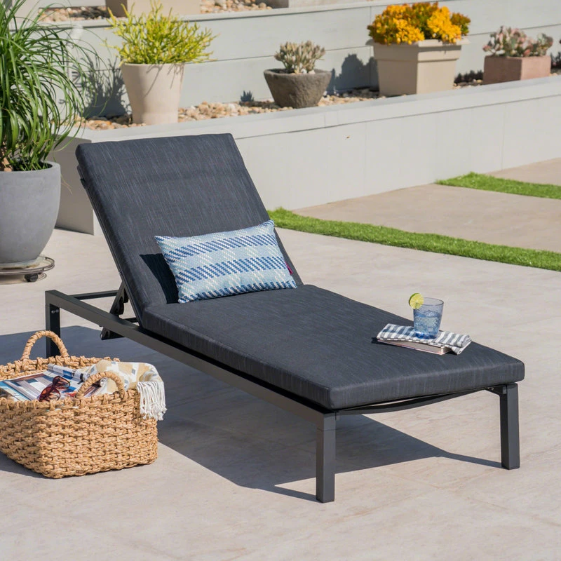 This aluminum lounge is a wonderful way to add a modern touch to your patio. Featuring an aluminum frame with water resistant cushion upon which to sit, this set is a fresh take on a classic look. Relax all summer long in your backyard with your favorite book and enjoy the fresh air and sun with this lounge.