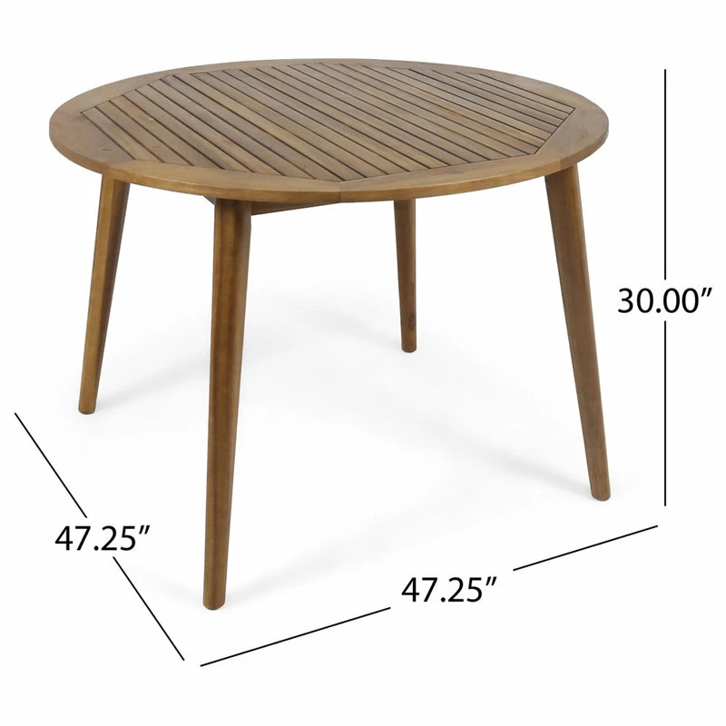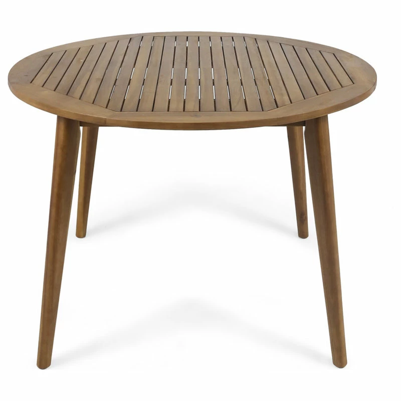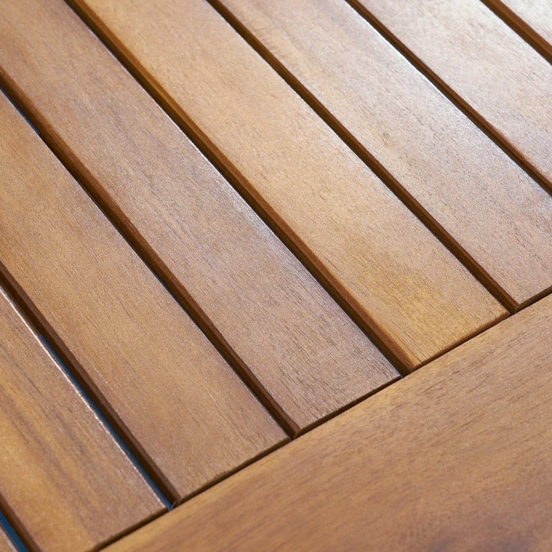 This simple and sleek acacia wood dining table is the perfect addition to any backyard space. Featuring a straight leg base for a more modern look combined with clean lines and a simple wood top, this table is sure to match with any type of decor you currently have. With a sturdy, timeless design and a water resistant finish, this table will not only match with all types of outdoor future, but will stand the test of time as well. Enjoy it on your patio today.