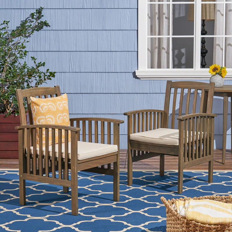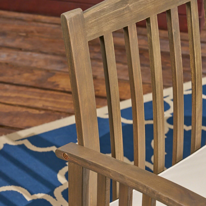 DURABLE; EASY TO ASSEMBLE AND MAINTAIN – comes with all necessary tools included. Weather-, water-, and fade-resistant. Cushion covers are removable and machine-washable. Apply teak oil to maintain naturally-appealing sheen.