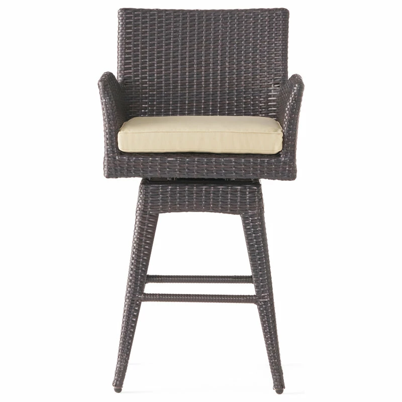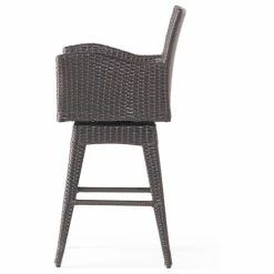 The Royer Outdoor Wicker Swivel Barstool are the perfect edition to any setting. Combining sturdy construction with -A uniquely styled back and wide arms, this stylish chair adds beauty, flair and functionality to your garden or back yard patio. Our -Wicker is treated, which makes this chair ideal both indoors and out. With this chair, is it -Easy to create the outdoor setting you have always dreamed of. Made to resist the elements, this chair will be an amazing addition to your home for years to come.