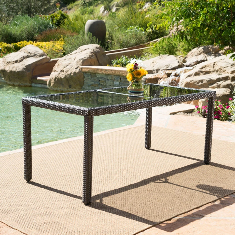 A beautiful centerpiece for your backyard, patio, or garden, this table is made from an inspired combination of high-quality tempered glass and finely-woven wicker. The site of many lovely dinner parties, you’ll treasure this for years to come.