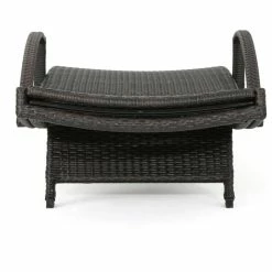 Add some stylish comfort to your patio decor with this wicker lounge now with arm rests. Both the chair and cushion are weather resistant and with an adjustable back and folding legs for easy stacking. Avalaible with select cushion colors.